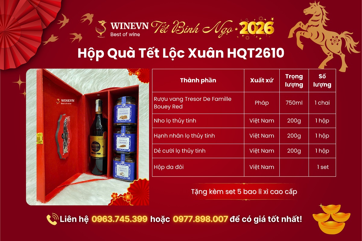 Đặt mua Hộp Quà Tết Lộc Xuân HQT2610 giá tốt tại WineVN