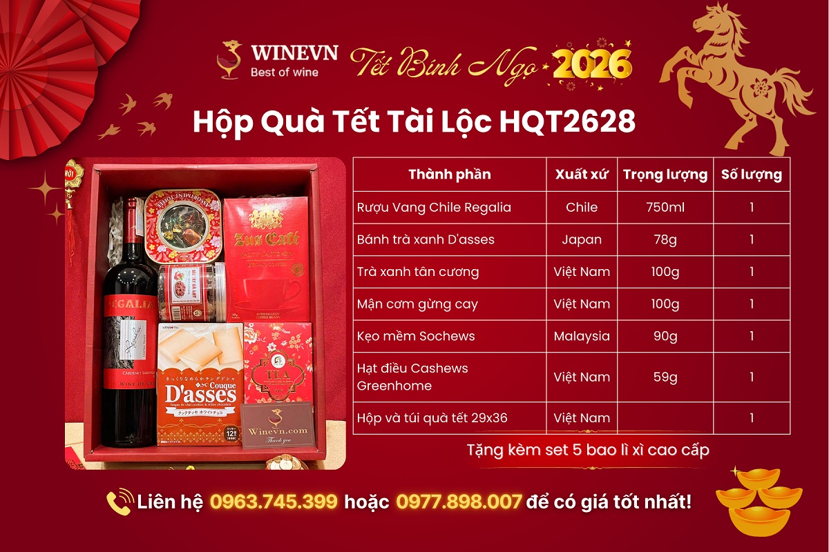 Thành phần trong Hộp Quà Tết Tài Lộc HQT2628 có thể linh hoạt điều chỉnh theo ngân sách và mục đích biếu tặng, đáp ứng hiệu quả nhu cầu quà Tết doanh nghiệp trong dịp Tết Bính Ngọ 2026. WineVN hỗ trợ tư vấn phối quà, in logo theo yêu cầu và giải pháp quà Tết số lượng lớn dành cho công ty, tổ chức và đối tác kinh doanh.