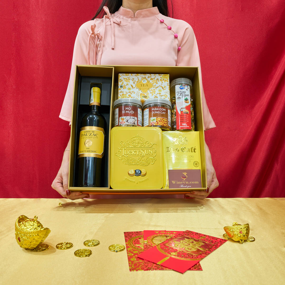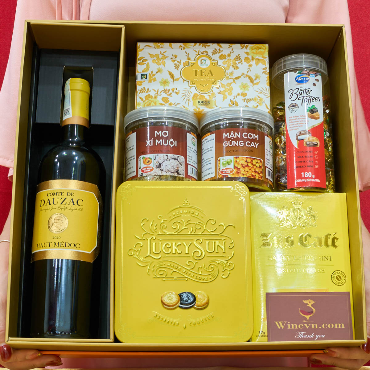 WineVN sẽ tư vấn dựa trên nhu cầu và ngân sách của bạn. Với đối tác, bạn có thể chọn các dòng vang cao cấp Pháp, Ý kèm hộp quà sang trọng.