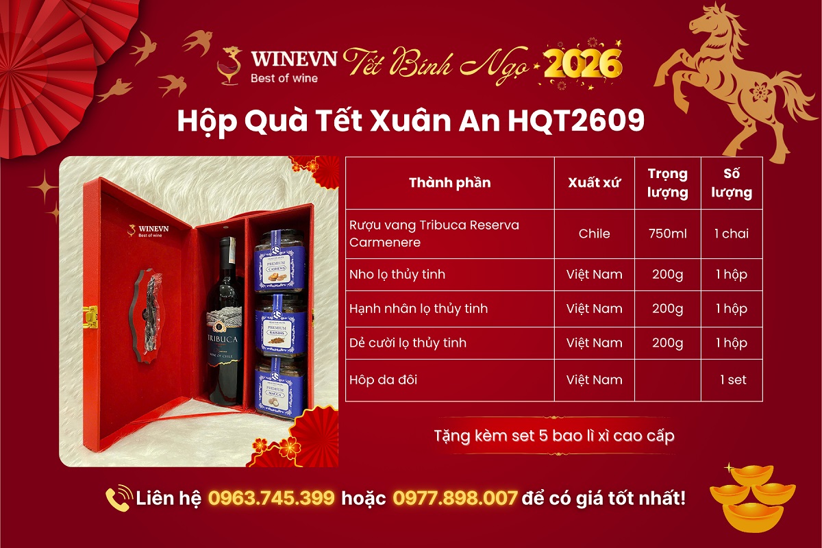 WineVN cung cấp Hộp Quà Tết Xuân An HQT2609 với mức giá hợp lý, sản phẩm nhập khẩu chính hãng và quy trình đóng gói cẩn thận. Khi đặt mua, khách hàng được tặng kèm set 5 bao lì xì cao cấp cùng dịch vụ tư vấn lựa chọn quà theo ngân sách và mục đích biếu tặng. WineVN hỗ trợ giao hàng nhanh toàn quốc và giao hỏa tốc nội thành, bảo đảm hộp quà được kiểm tra kỹ lưỡng trước khi xuất kho để giữ nguyên vẻ sang trọng khi trao tặng.