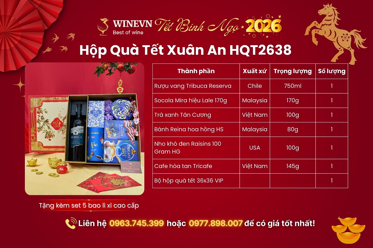 WineVN cung cấp Hộp Quà Tết Xuân An HQT2638 với sản phẩm rõ nguồn gốc, đóng gói chỉn chu và hỗ trợ tư vấn linh hoạt theo ngân sách. Khách hàng có thể điều chỉnh thành phần, in logo theo yêu cầu và đặt số lượng lớn phục vụ nhu cầu quà Tết doanh nghiệp.