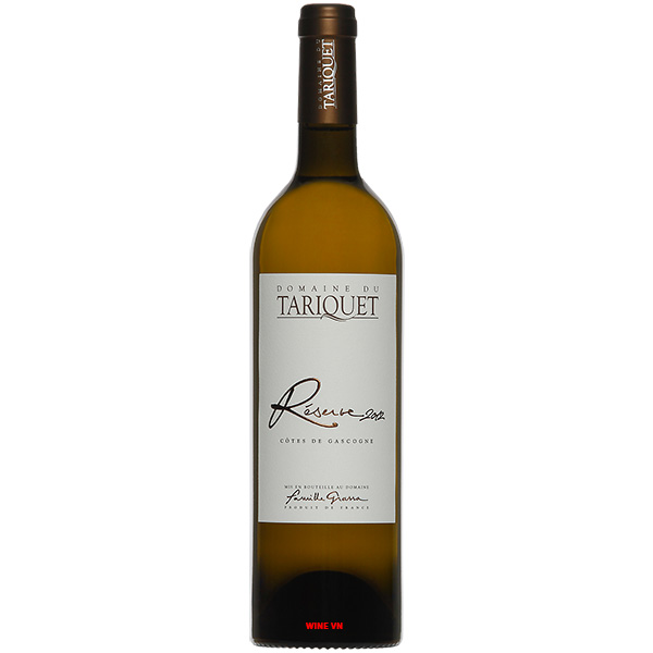 Rượu vang Domaine Du Tariquet Reserve là chai vang trắng có lượng tiêu thụ lớn của nhà Domaine Tariquet đến từ nước Pháp. Vang được đánh giá cao nhờ chất lượng hảo hạng, hương vị đậm đà nhưng giá cả vô cùng mềm mại phù hợp với đông đảo các tín đồ trên thế giới bởi lên men từ sự hòa quyện giữa bốn giống nho Gros Manseng, Chardonnay, Ugni Blanc và Sauvignon Blanc.