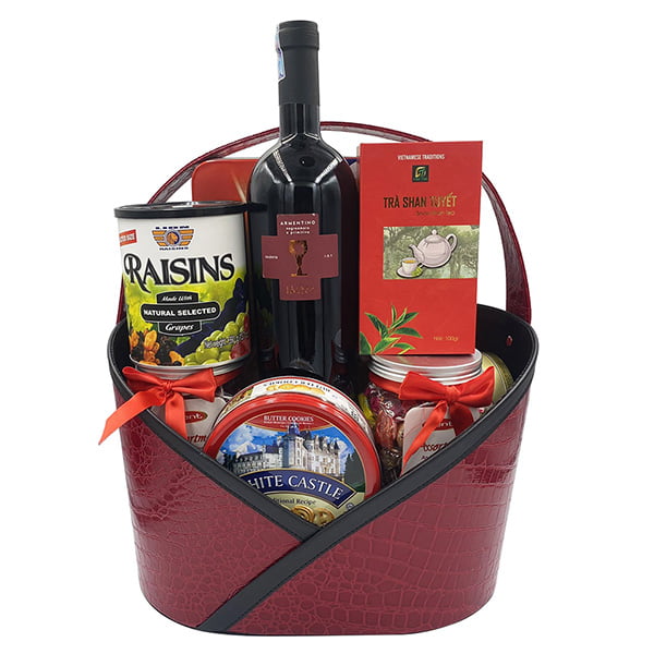 Giỏ Quà Tết Bằng Da Đẹp GQT2201 | WineVN